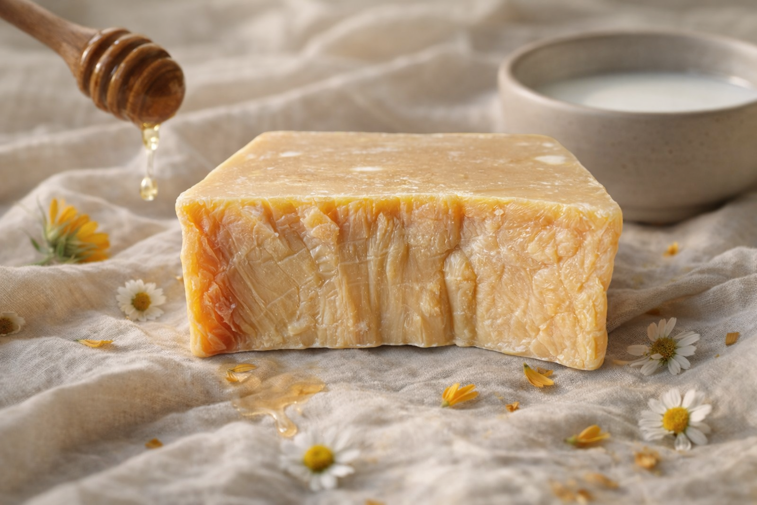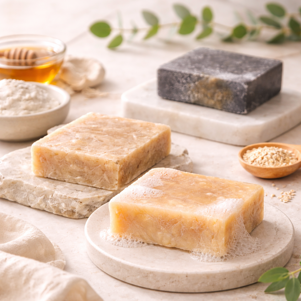 Nos savons saponifiés à froid sont formulés avec des ingrédients nobles et bruts pour une routine skincare douce, efficace et sensorielle.